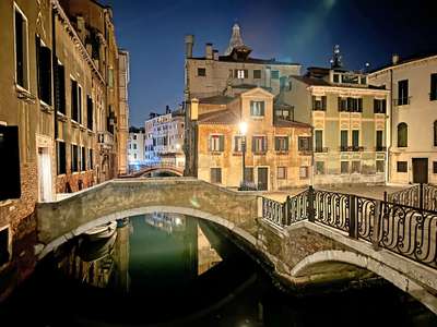 Experience the city of Venice Venice illuminated by night on a guided tour, from San Zaccaria Church to Marco Polo’s house, ending at charming Campo San Tomà
